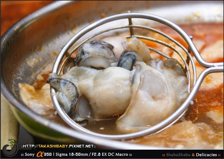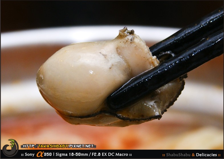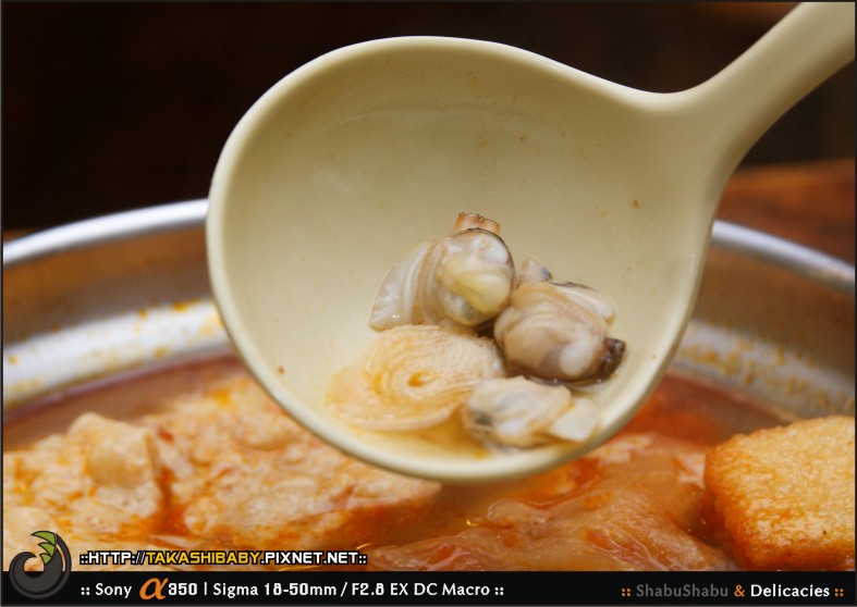 ▼這種涮涮鍋專用的大湯匙對照下,煮熟的蛤蜊肉比較一下;一般的火鍋店大概煮一煮,連蛤蜊都不見或是嚴重縮水;這一家用的大蛤蜊,一點都不含糊!的確是熬湯的好材料。