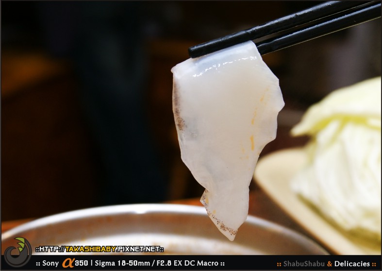 ▼來台中,很少看到比較「大隻」的花枝;這花枝片夾起來,折了一折,面積還真是不小;滑溜滑溜的,夾起來真是得要有點技術!