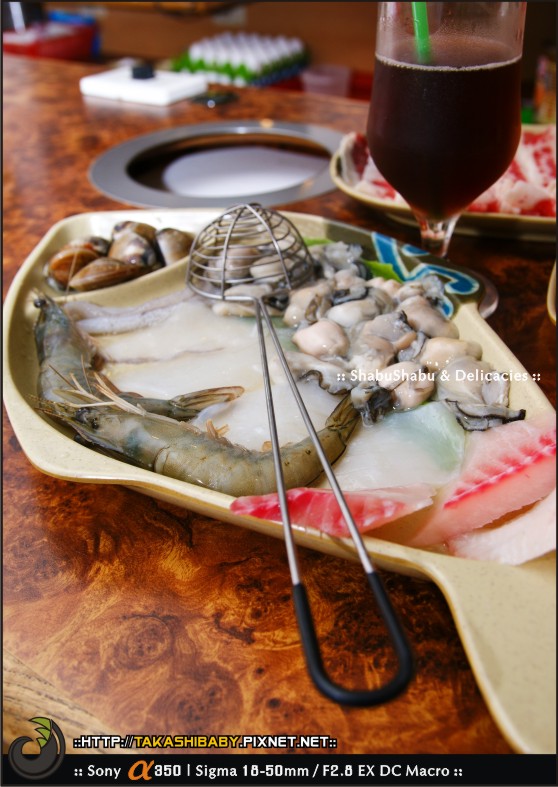 ▼海鮮鍋的主盤!雖然這不是天天點的,不過一看到這主盤,真是覺得用料真是豐富!老闆來特地換上「藍鑽蝦」要我們試吃看看!