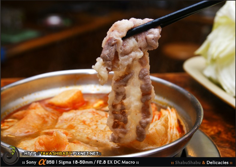 ▼最喜歡這培根牛的味道了!川燙完之後,那厚厚的油花清晰可見,加上鍋底的麻辣湯頭,真是絕配到了極點!
