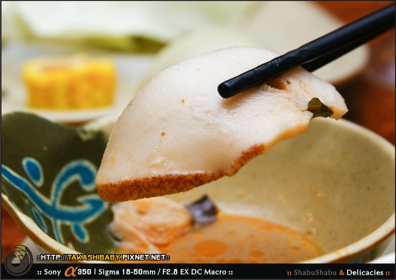 ▼肥厚新鮮的「鯛魚片」!這色澤真是很吸引人;這裡的鯛魚片跟一般火鍋店的不太一樣!一般火鍋店的鯛魚片,煮熟了容易散掉!但是這一家的鯛魚片應該是夠新鮮吧,還沒遇到會有煮熟散釣得情況!